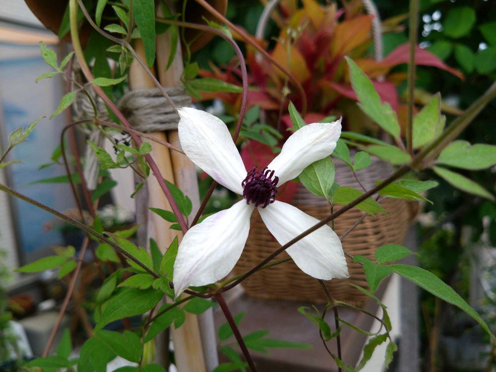 いつのまにか竹支柱をするする登り、てっぺんで迷子になっていて🌿