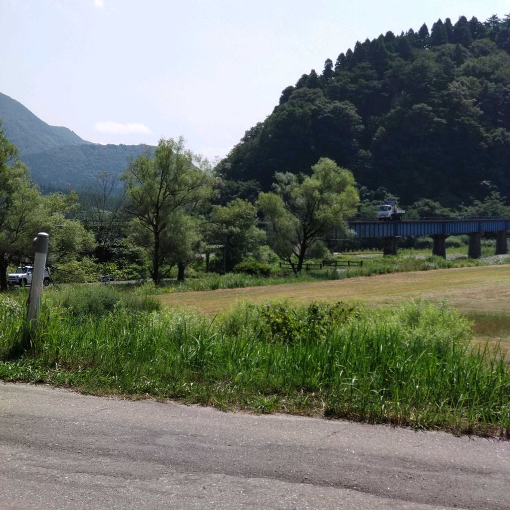 〈地道投稿〉今日もあちぇ‼️🥵日陰の駐車場から出しまさした1️⃣「オリズルラン」を、少し間日光浴させます、細いですが両脇きゅうり2番苗です2️⃣「アマガエル」見ないと思ったら、ここに居ましたね😀3️⃣数年道路工事で列車通らない陸羽西線、復旧に向け陸橋を鉄陸両輪工事トラック線路を走ります。