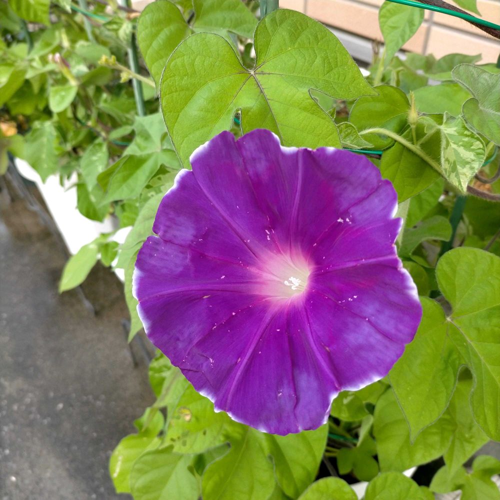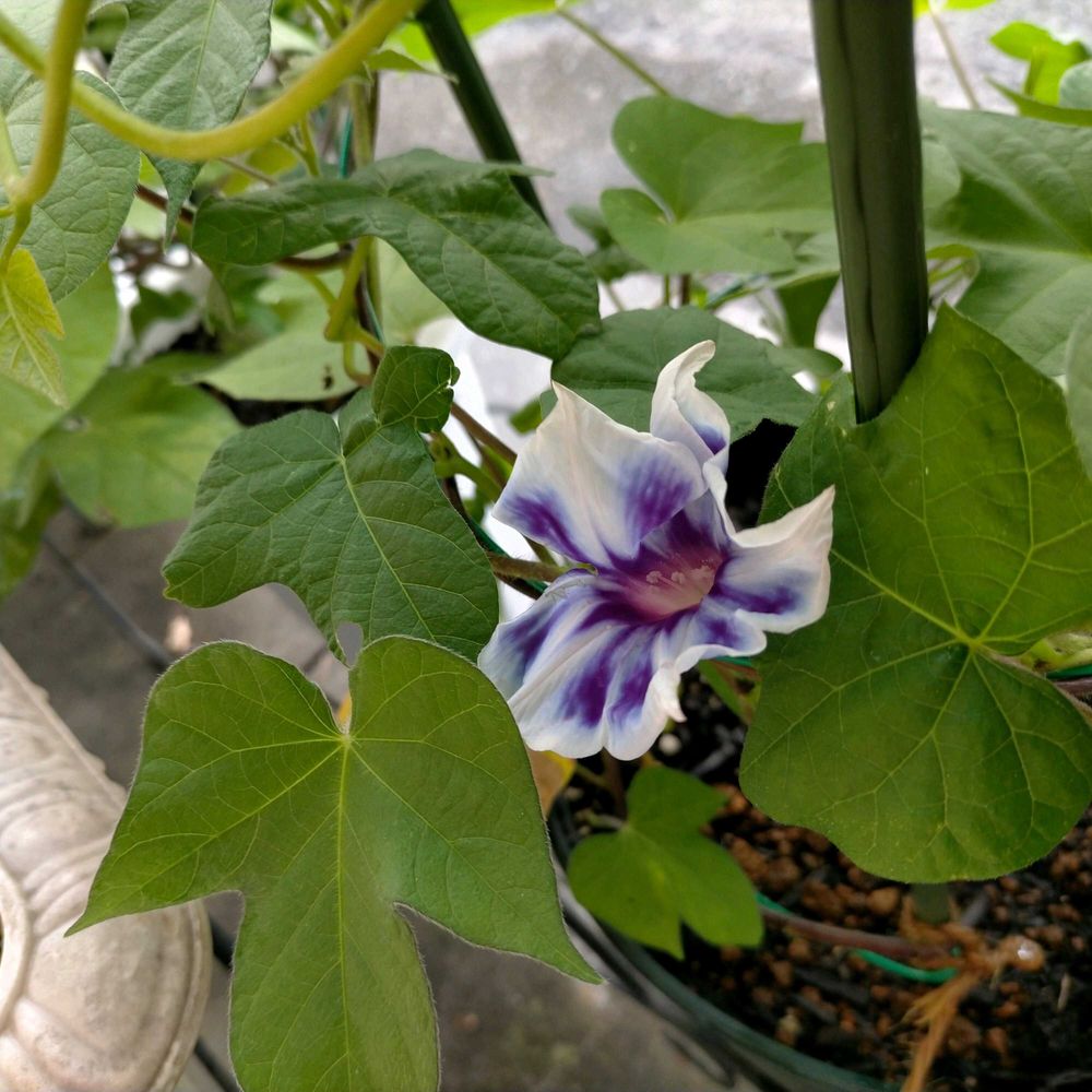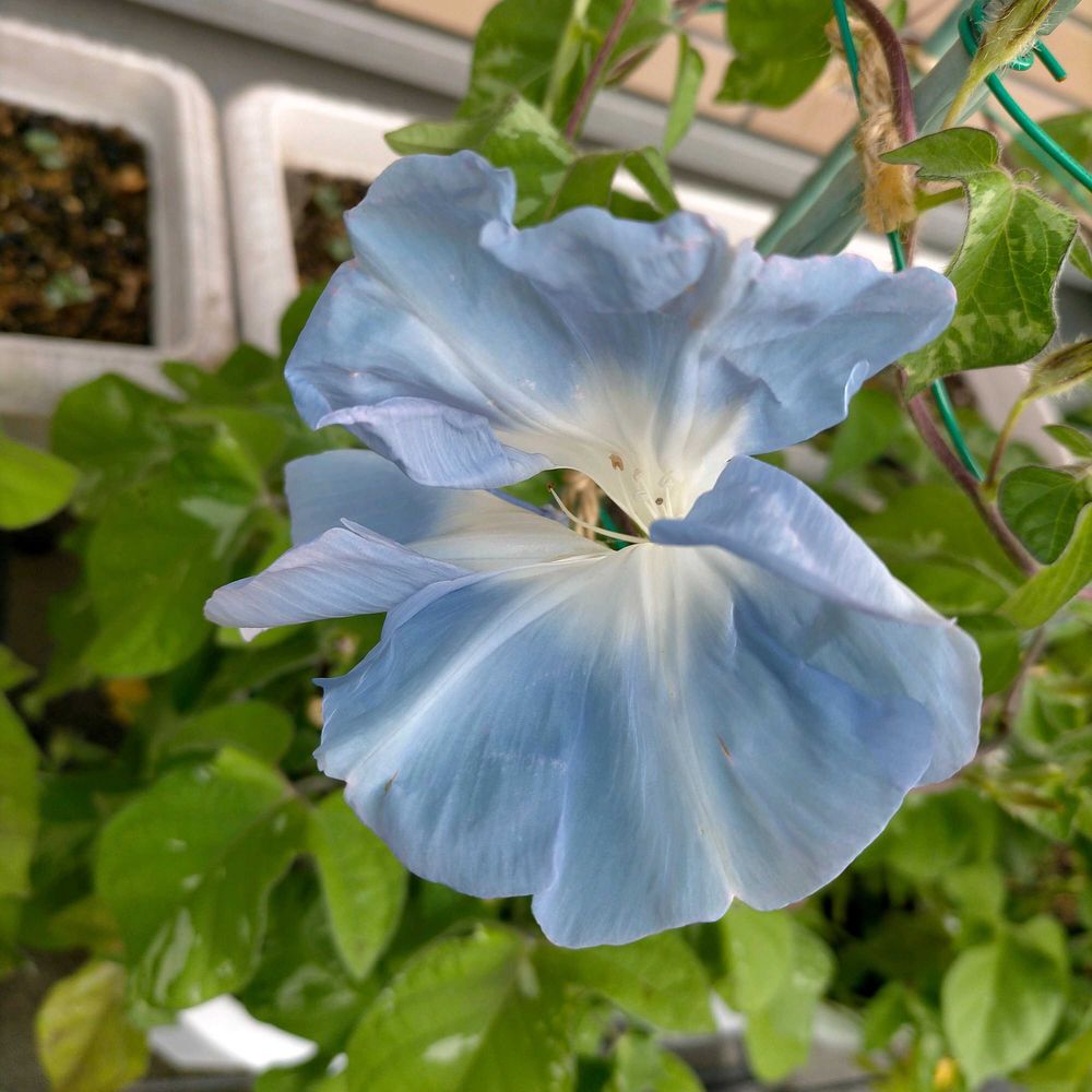 スノーフレークはF1品種の西洋朝顔で、そこからの採種なので安定しないみたい。本来はもう少し紫色の部分が多いです。まぁ何が咲くかわからないというのも自家採種の楽しみの一つですものね😁