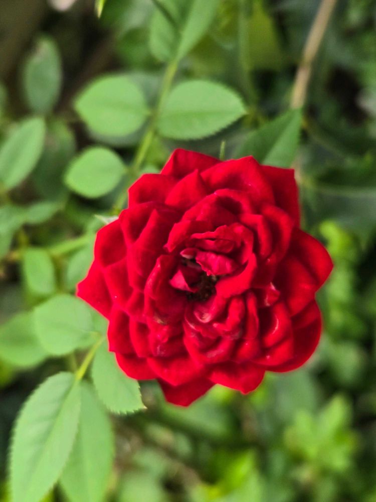 深紅の薔薇🌹は小さな薔薇ですが、形と色は存在感抜群です🤗