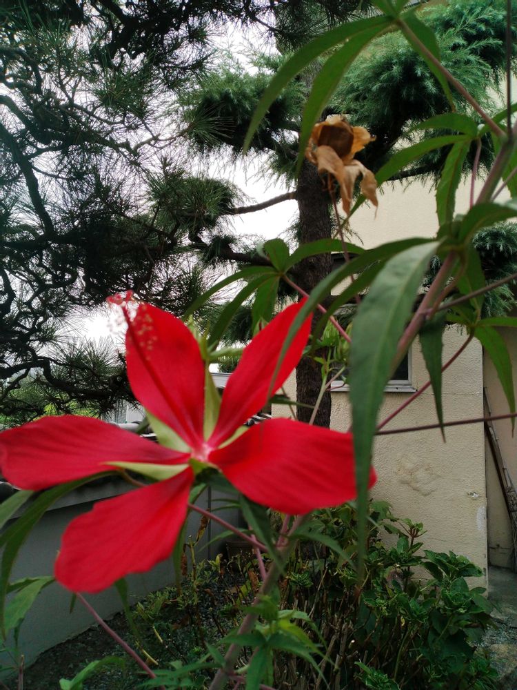 ご近所の庭、鮮やかな真っ赤が👀に止まったので、パチリ💦しました😂