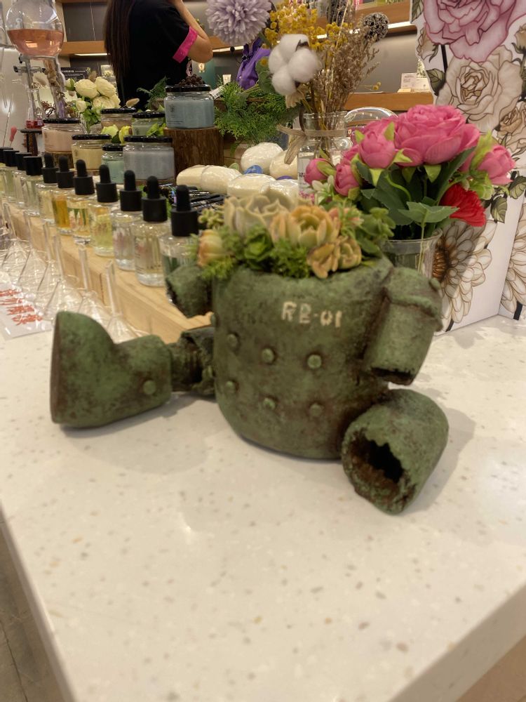 期間限定?なのか、店舗にディスプレイされたミニロボットプランター達。。。あと、30体。。。いや、大きいのを合わせたら40体、作る予定。。。?