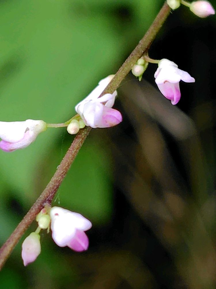 花は細長い花序にまばらにつき、淡紅色で、長さ3〜4mmの可愛い蝶形である。