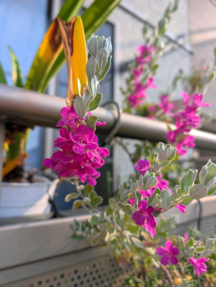 去年の冬から育てているエレモフィラがようやく咲いてきました。短毛が密生して植物体全体が銀色に見える品種です。リーフ材として植えてましたが意外と綺麗ですね!
