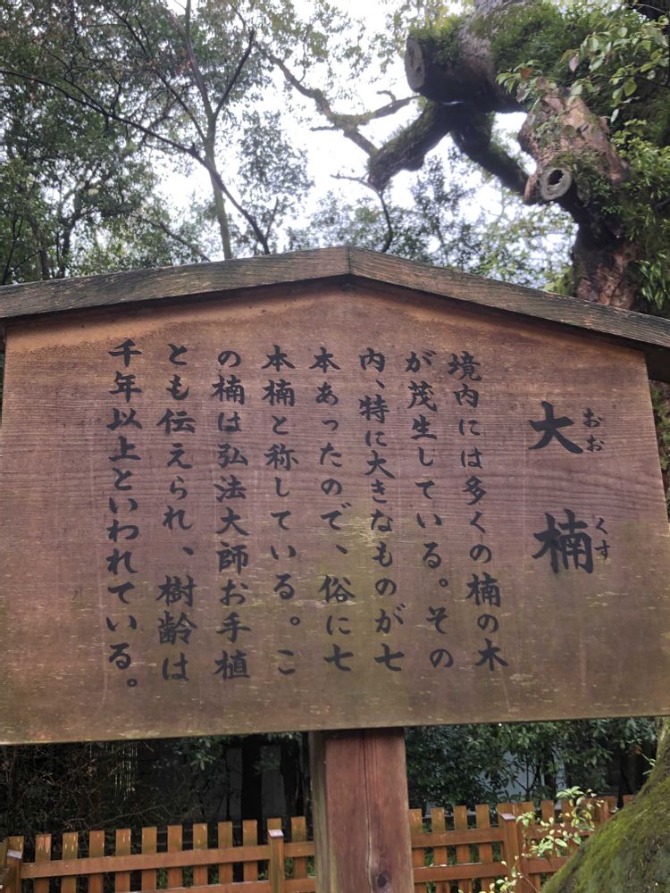 このクスノキは弘法大師お手植えと伝えられ、樹齢は千年以上と言われています。🤗