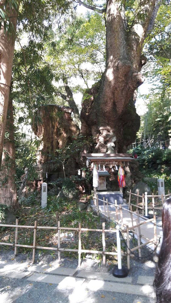 みて頂き有り難うございます。御神木(大楠)を一周すると、1年寿命が延びると伝えられています。家族で一周しました。また、願いごとを心に秘めながら一周すると願いが叶うという伝説もあります。