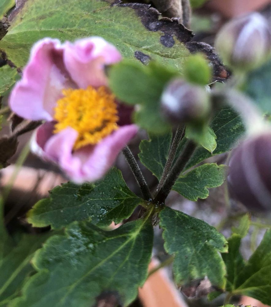 鉢植えで育てている『シュウメイギク』さん。去年は10月に咲きましたが、今年は猛暑日ですが、昨日一輪開花し他も蕾膨らんできました。😊