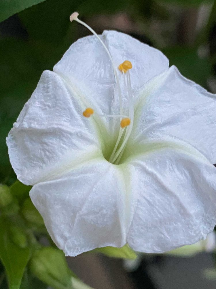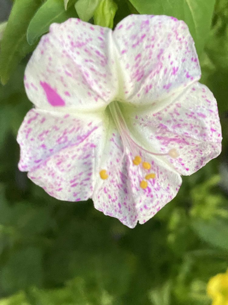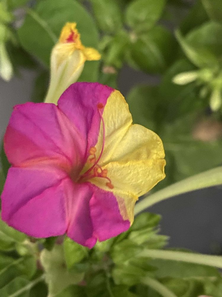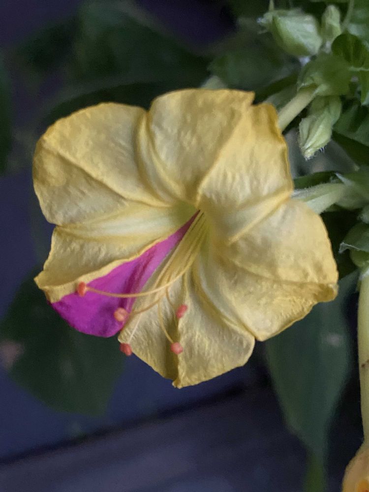 オシロイバナは朝もなんとか開いていました🩷💛🤍🎶🎵