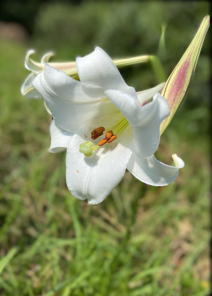 勝手にどこへでも現れるユリ、我が家の古い土地にも数年前から出現しました。地元ではタカサゴユリと呼んでいます🤍🌿