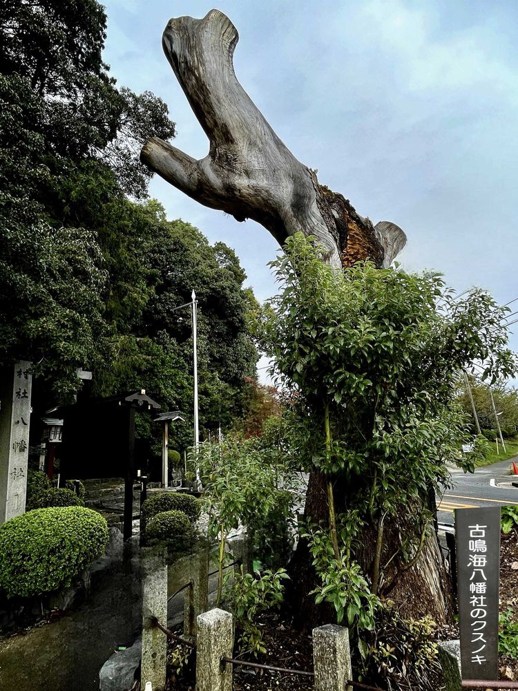 元来、2つの幹が交わる形で人字状になっていましたが、小さい方が枯れてしまいましたが今でも交差の跡が残っています…