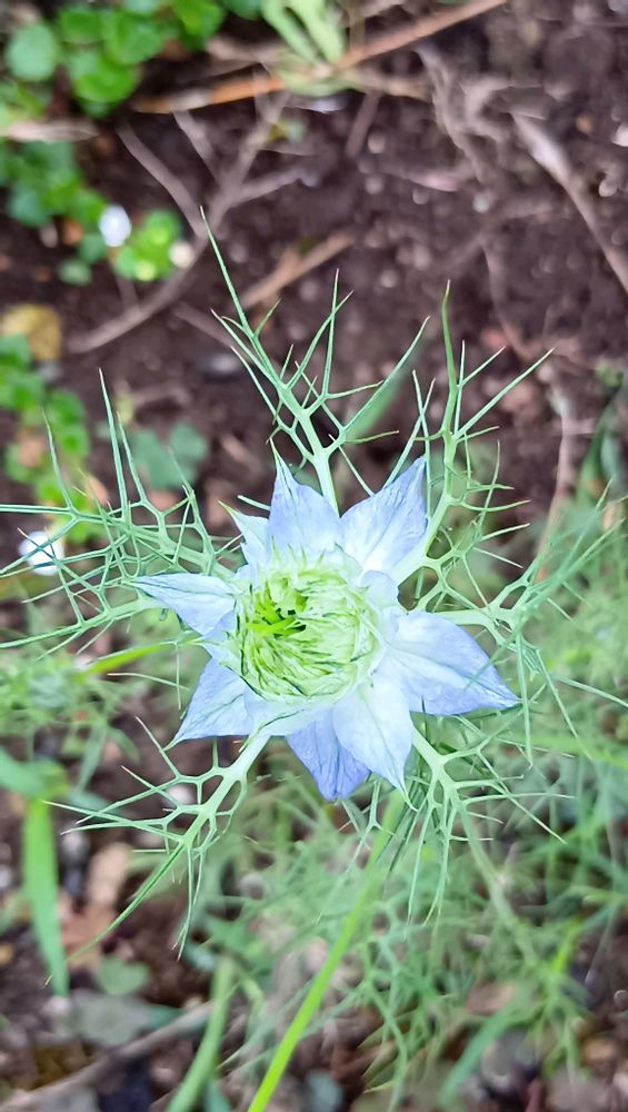 こぼれ種で、育った最後のニゲラさんが、綺麗です。🥰