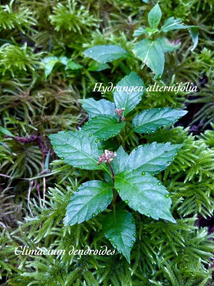 ⑤フロウソウの隙間から芽🌱を出し…成長中のクサアジサイ🤭