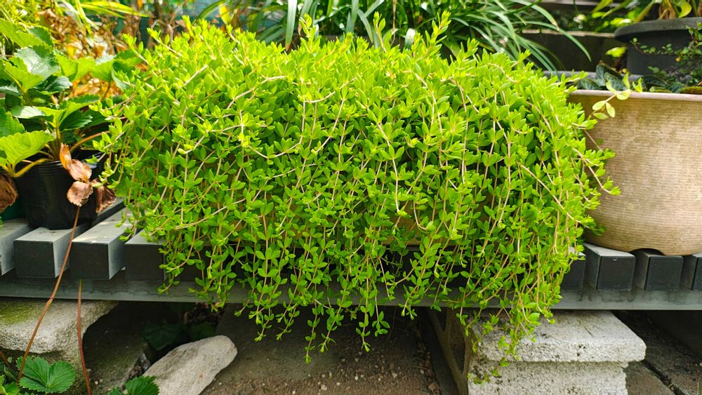 お隣さんから伸びてきたツルマンネングサを3本ほど頂いて、寄せ植えに垂らしたくて増活中ですが、やっと根付いた位で増やせるまでには当分かかりそうです😅