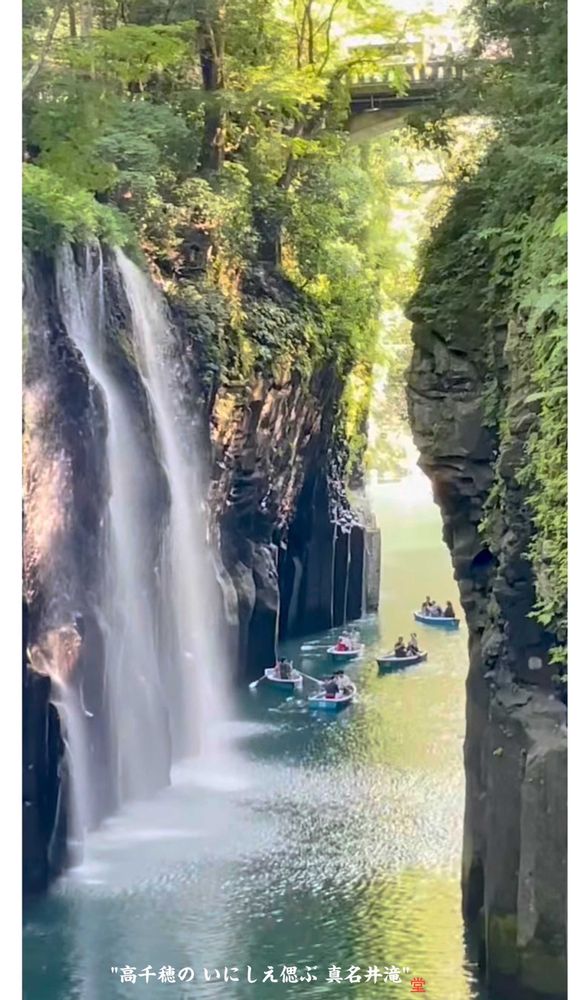 🗒️高千穂峡で一番の名所が真名井滝で、これから約2ヶ月先の紅葉シーズンになると、ボートに乗って滝しぶき:飛沫を感じながら、爽やかな秋の古:いにしえの風情が満喫できます❣️