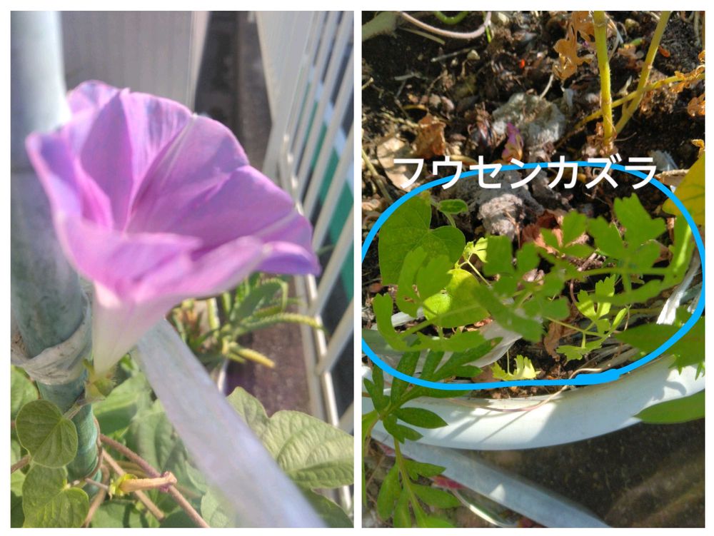 【3】昨年からの朝顔は溢れ発芽では無く、わざと埋めていた発芽からの開花