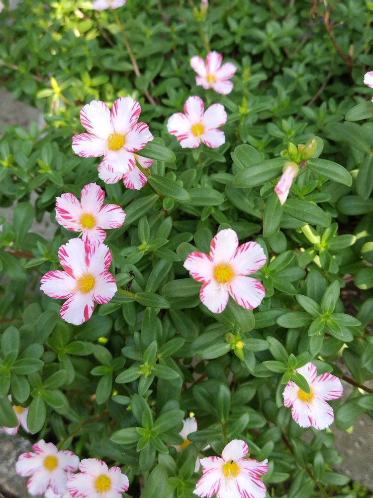 まとまった雨もなく庭の花も元気なしですが、ポーチュラカは暑さに強く、かわいらしく咲く姿に元気もらえますね💕