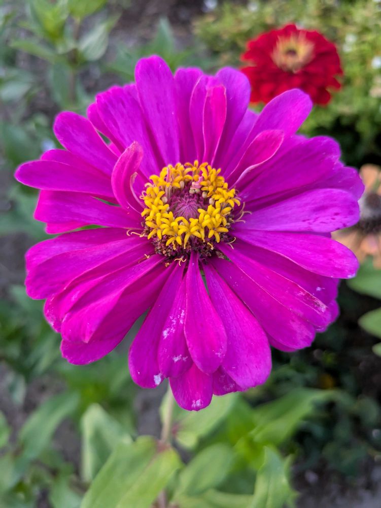 ヒャクニチソウ(ジニア)🩷💛❤️色んな花色➰花姿で元気に咲いていますね🎶