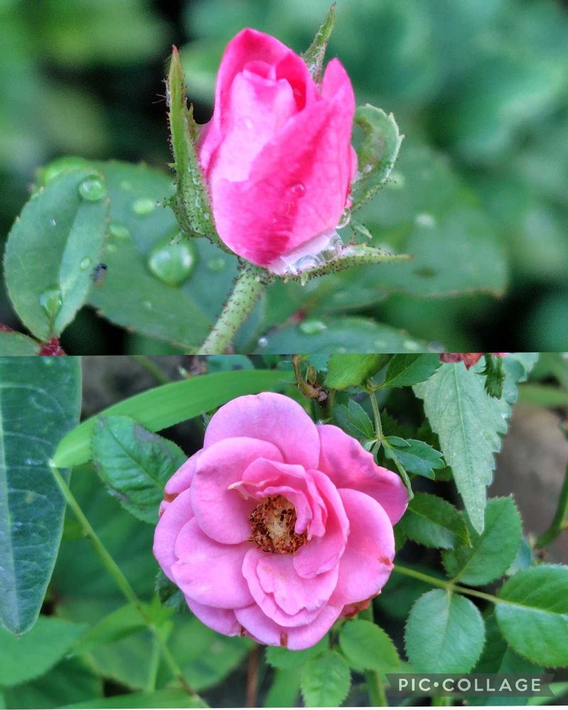 ②ピンクのミニバラとラッシュ