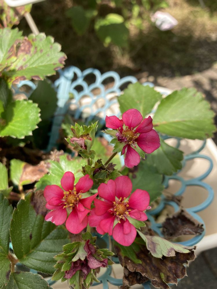 イチゴの花が3つ咲いてます‧₊˚ 🍓 ⋅ ☆