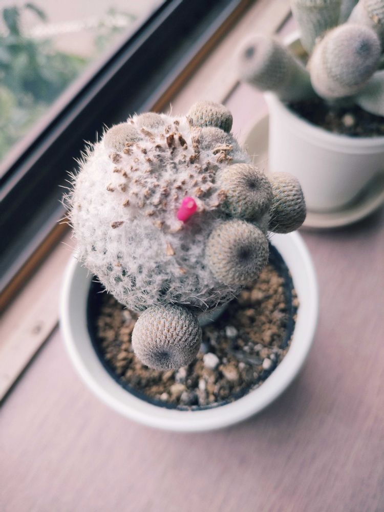 白っぽいサボテンについた赤いぽち。