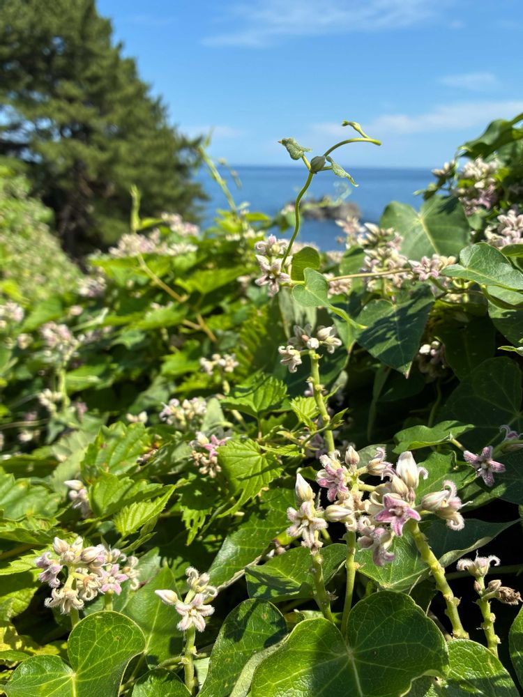 芝生地の海沿いを歩いていたらとってもいい香りが。2、3歩戻ってよく見たら、ガガイモが花盛り✨こんなにいい香りがするんだー🍀