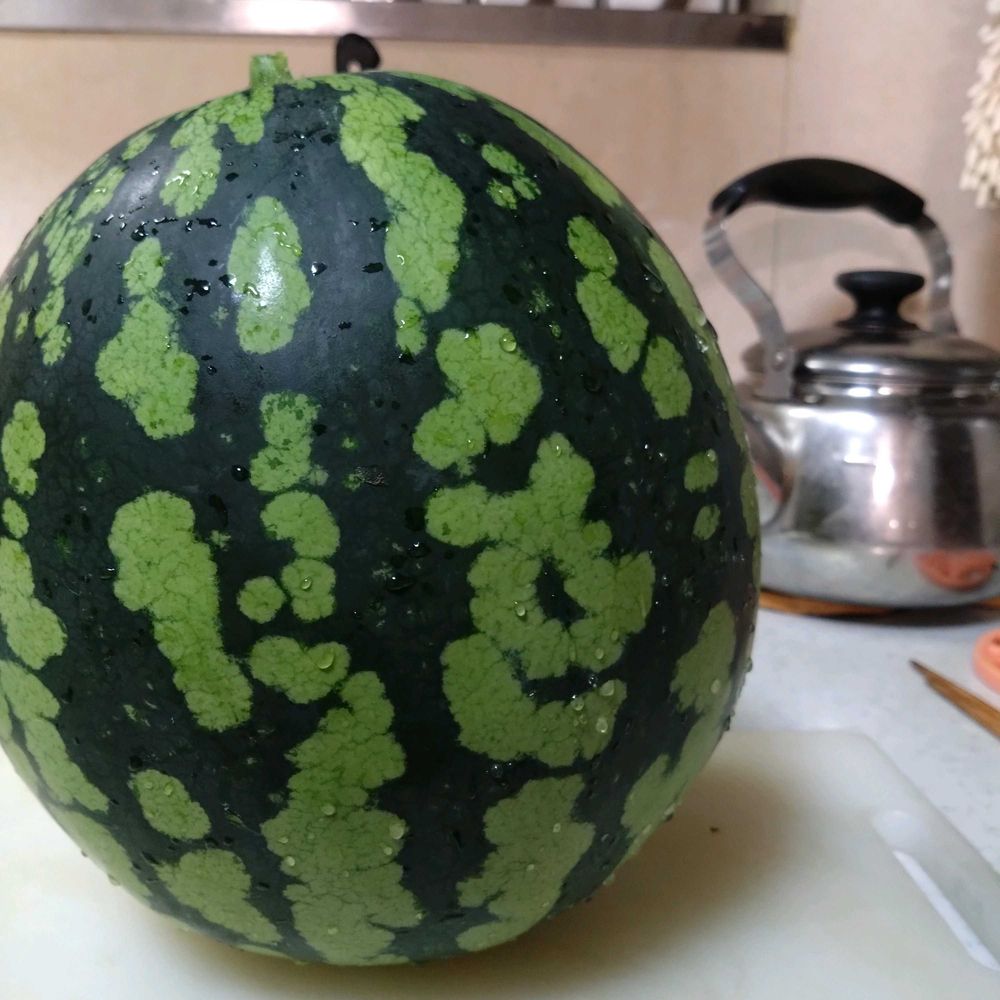 味は塩を振ったら甘くなりました😙😙今日スイカの木をみたらお手玉くらいのスイカが自然交配して大きくなりかけていました