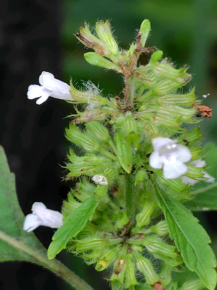 萼は筒状2唇形で長さ4〜5mm、萼の上唇は3裂し下唇は2裂する。縁には毛がある。