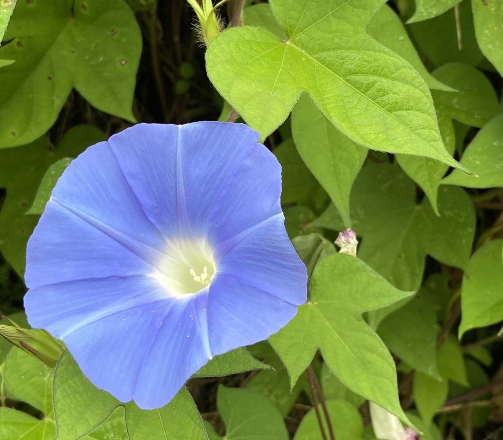 野良アサガオちゃん、とっても素敵なお色。毎年咲いてくれるのですか〜🩵💙