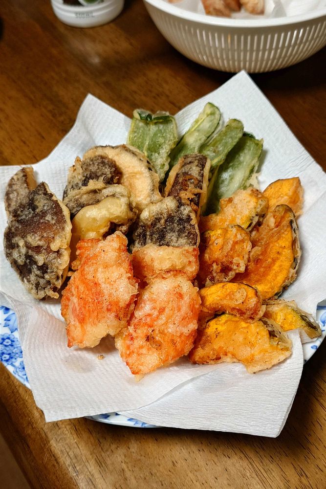 ところで、水っぽい具材はに打ち粉的に天ぷら粉まぶしてから、液体につけると衣が取れにくく揚がるとも袋に書いてました。