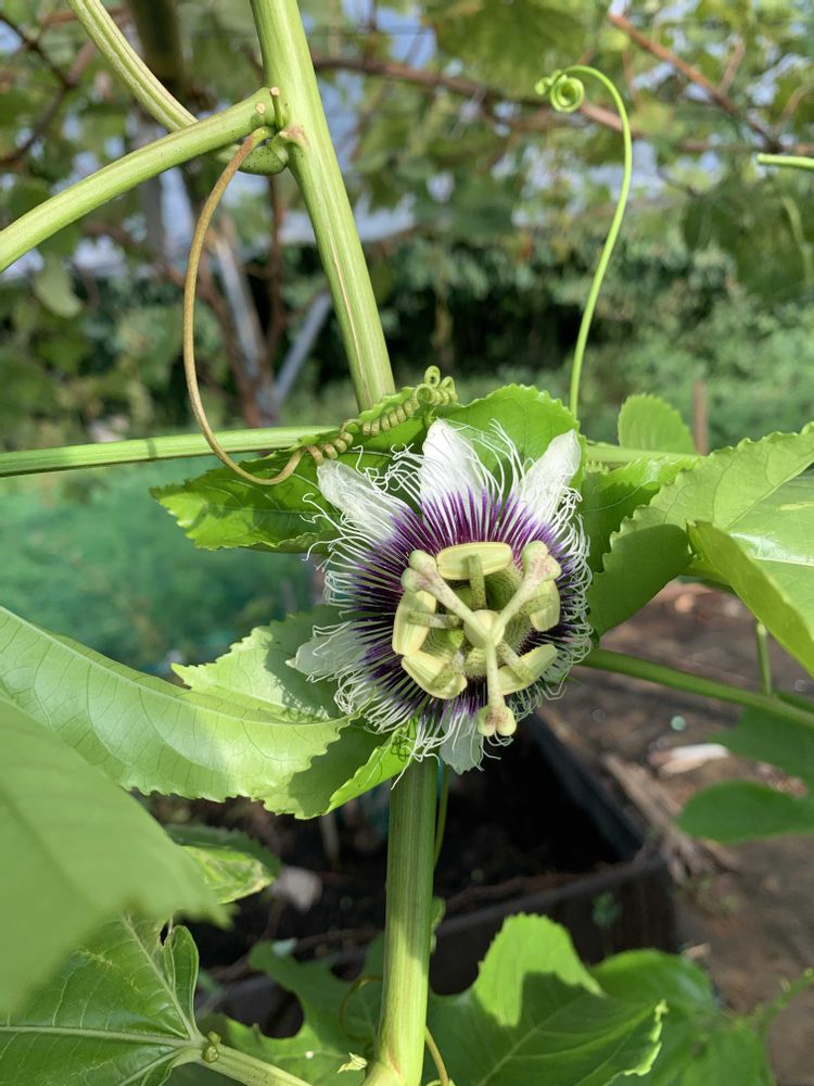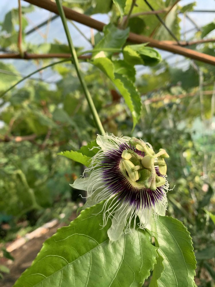 暑い日が続きますが、漸くパッションフルーツの花が咲きました。🌸