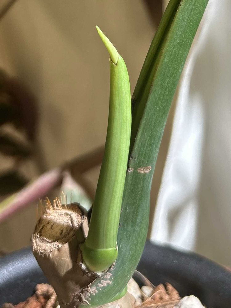 モンステラ👾ミューテーションの新葉🌱非常に成長遅くて1年に1枚ペースです💦