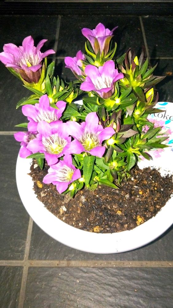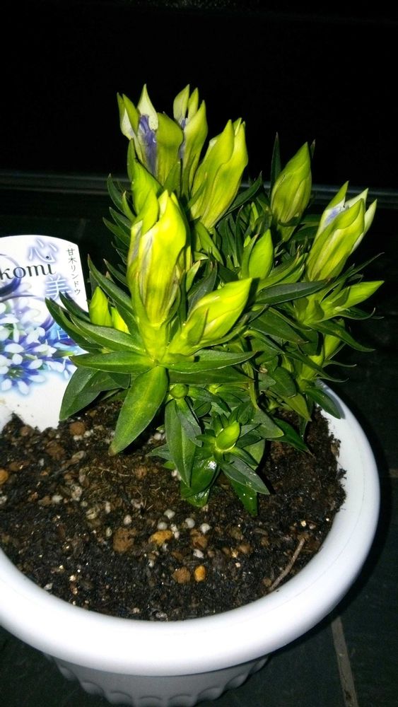 リンドウ3色。Kokomiシリーズです。「白寿」はまだ花が見えませんが、「舞」「静」は花が咲いています💖