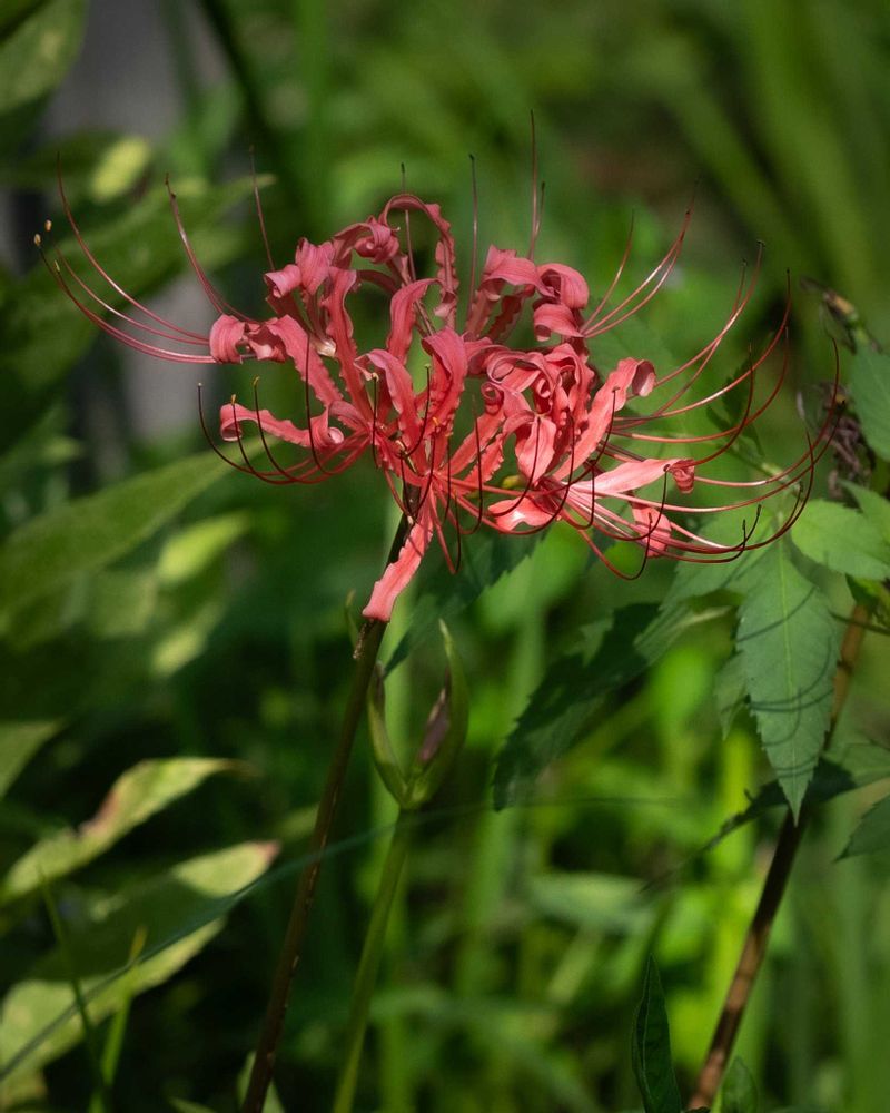 洗足池公園の林の下草としてヒガンバナがわずかながら咲いていました。今季第一号です。 2025.08.27.