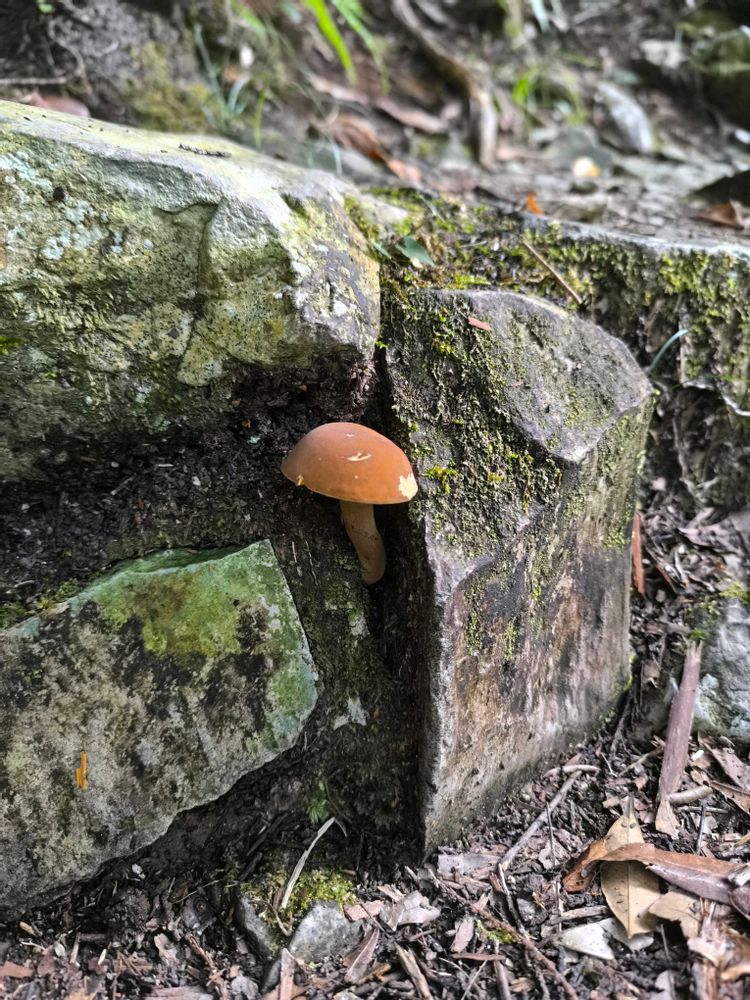 滝に向かう途中の石段の途中からひょっこりはん♪
