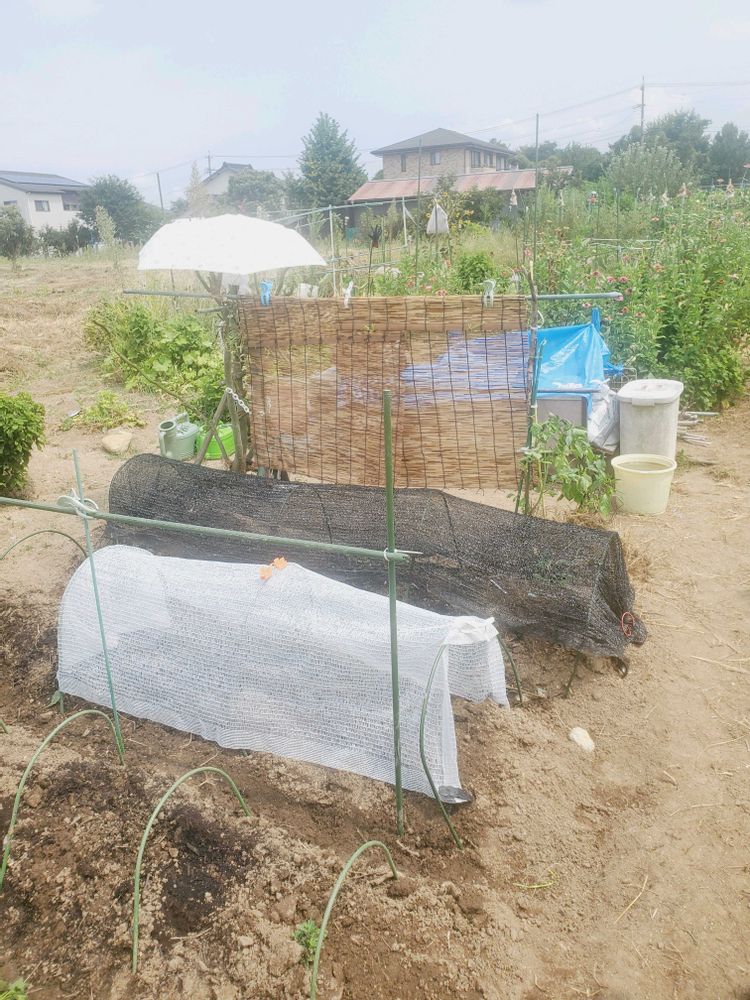 二十日大根やホウレンソウなど発芽が早すぎてるので日よけしました。