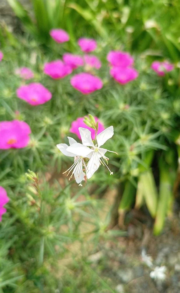 松葉ぼたん🌸とこぼれ種っ子のガウラ🤍の仲良しpic に癒されます☺️
