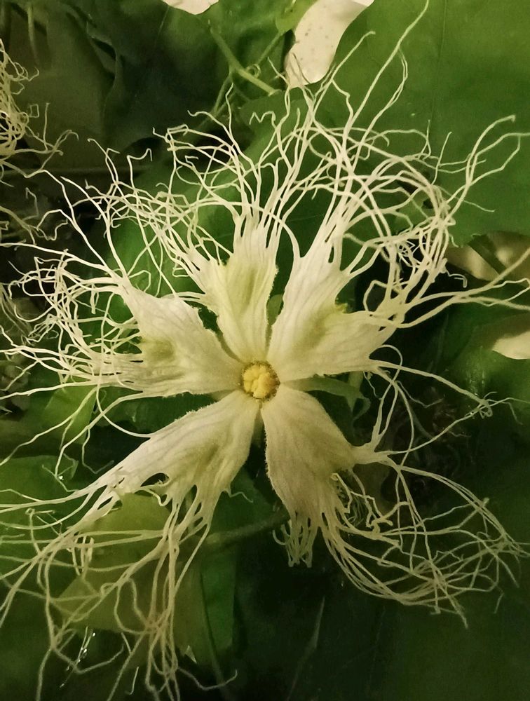 キカラスウリは10時くらいまで咲いてますが、やはり外側のレースがカーブしてます。