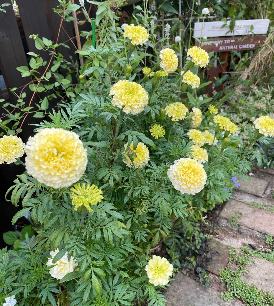 マリーゴールド育てるのが苦手で、毎年上手くいきません。アフリカン系のまん丸ポンポンをこんな風にたくさん咲かせるのが夢です🥲