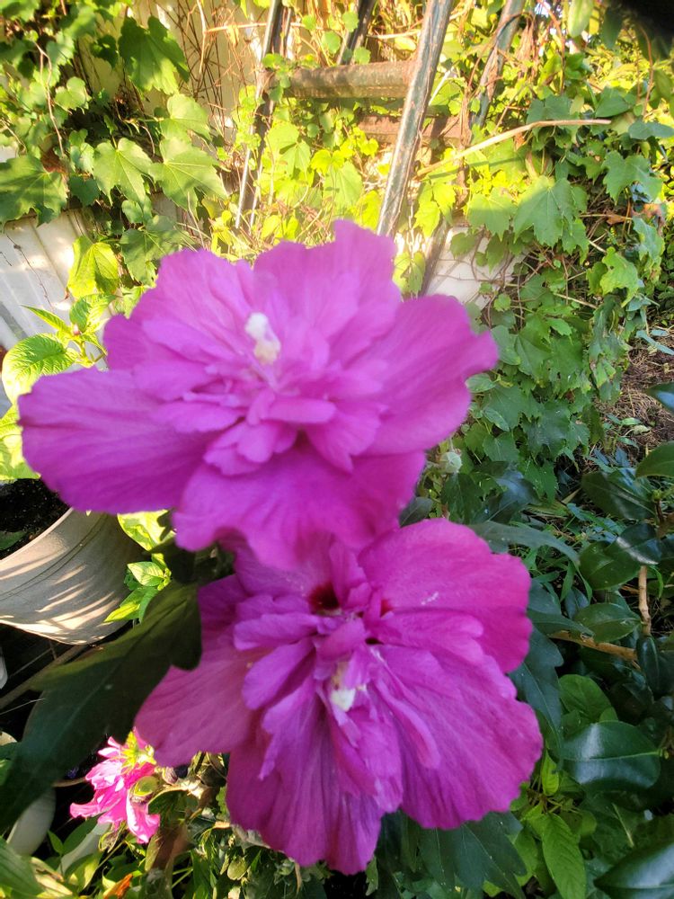 ムクゲ光花笠🌸二輪並んで咲いていて🤳しました🤗