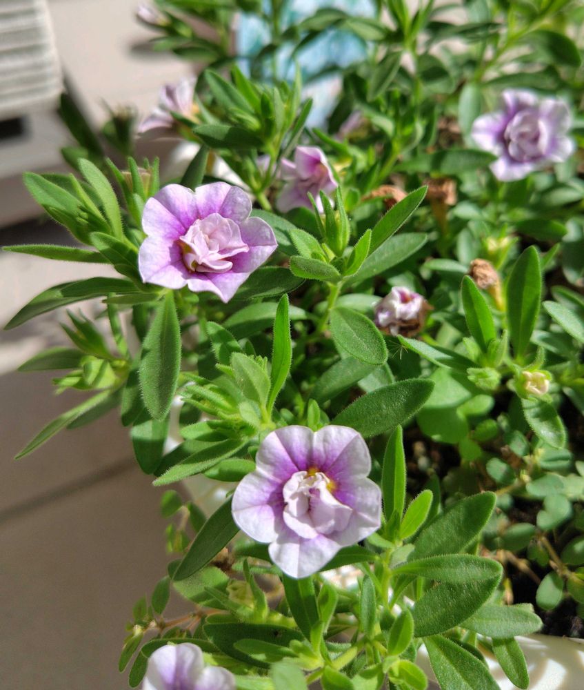 ふうふうさんの玄関アプローチ,ムクゲ,八重咲きカリブラコア グレープフリルの投稿画像
