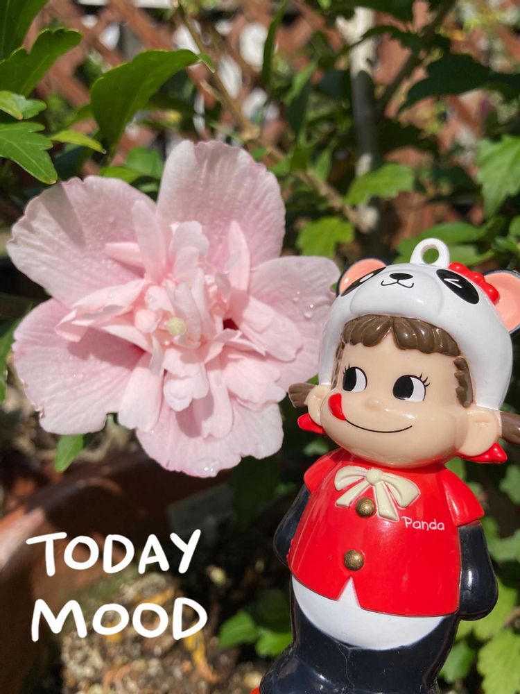 ペコちゃんの目線の先に、お花がバッチリありますね👍