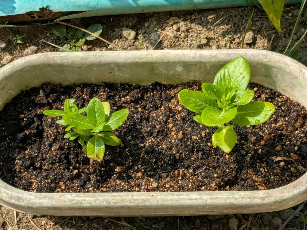 2️⃣一方こちらはこぼれ種からのニチニチソウ