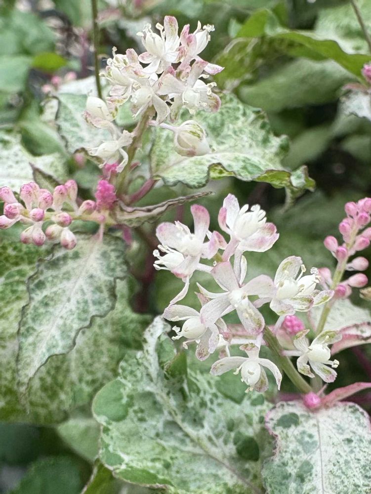 この斑入り葉もピンクの小ちゃな蕾もお花も全て好き💖