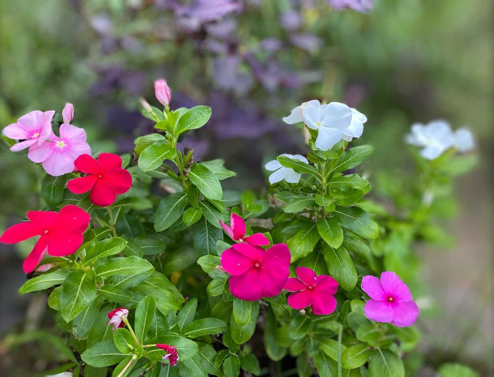 ①ニチニチソウは ずーっとまだ元気に咲いています♪🩷❤️🤍💗🌿