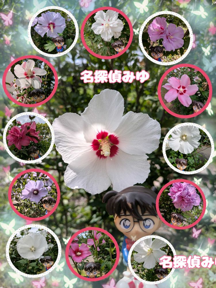 ムクゲのコラージュ、いろんな種類があって可愛いです💕