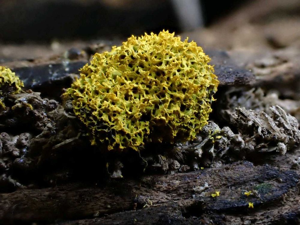アップもいいけど変形菌をひとつの風景と捉えたわすれな草さんの構図も素敵ですよ(🌱∇🌱)
