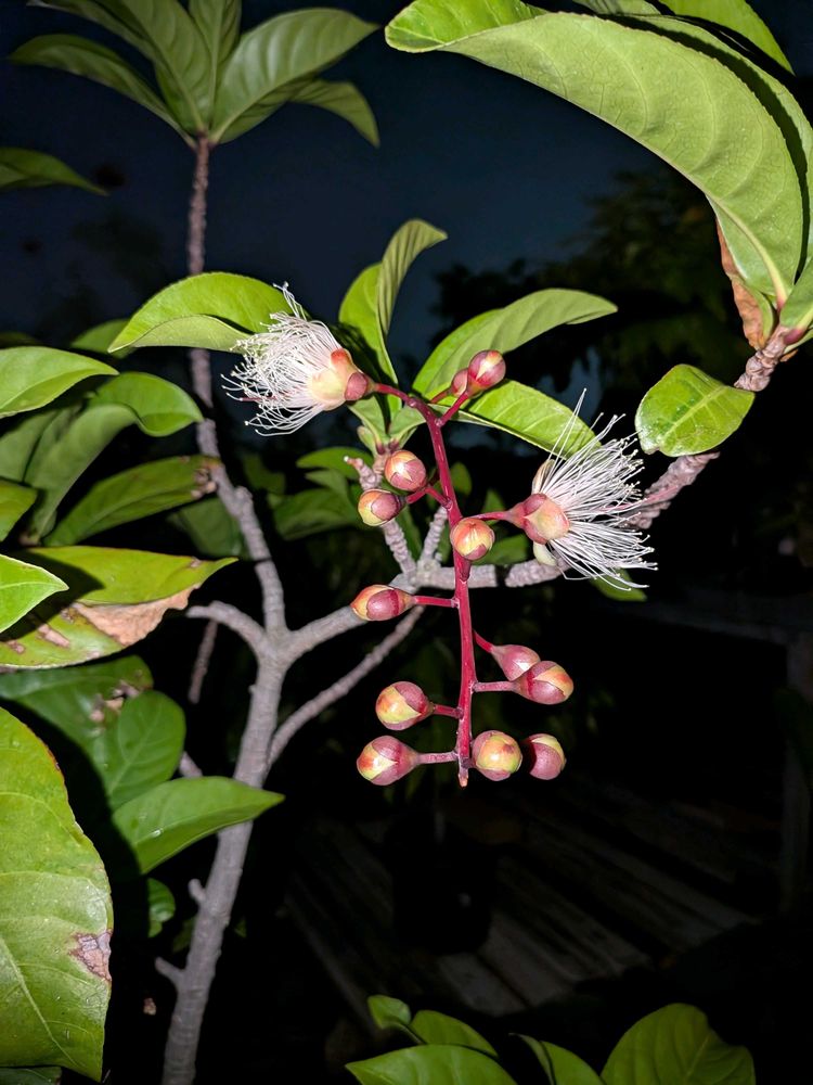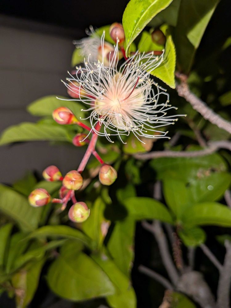 サガリバナの蕾が徐々に開き甘い香りがして来ました。そして今夜8時〜9時頃にはピークを迎えると思います。ちなみに真喜屋の舞香花(もうかばな)サガリバナは花序の一番長い物で1mを超える物があるそうですが今頃はライトアップなどされているのでしょうね