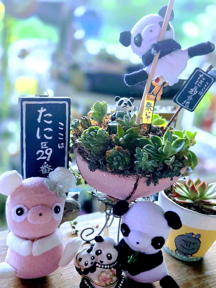※まつぴよさんのソクモンパンダチャンも…まつぴよさんのハニワ鉢と一緒に仲良くルンルン🎵🐼🐼🐼