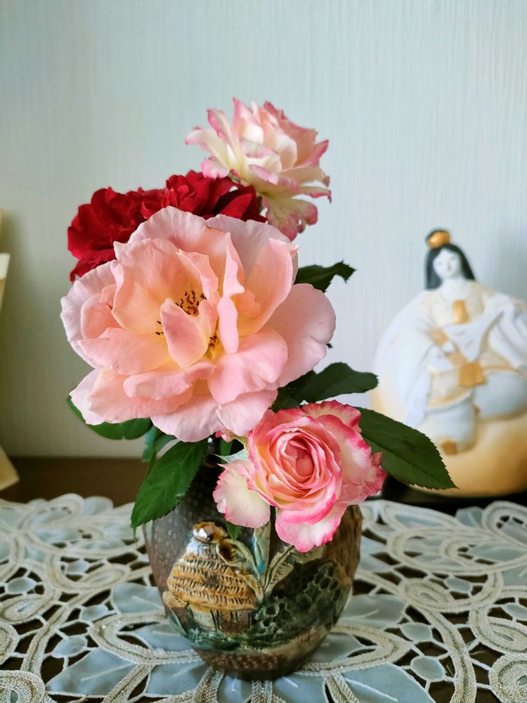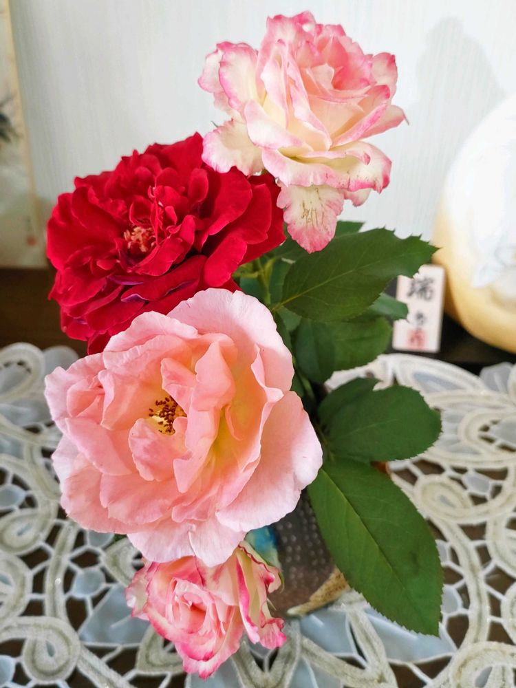 鉢植えの四季咲き薔薇も、色良く咲いてくれています🥰