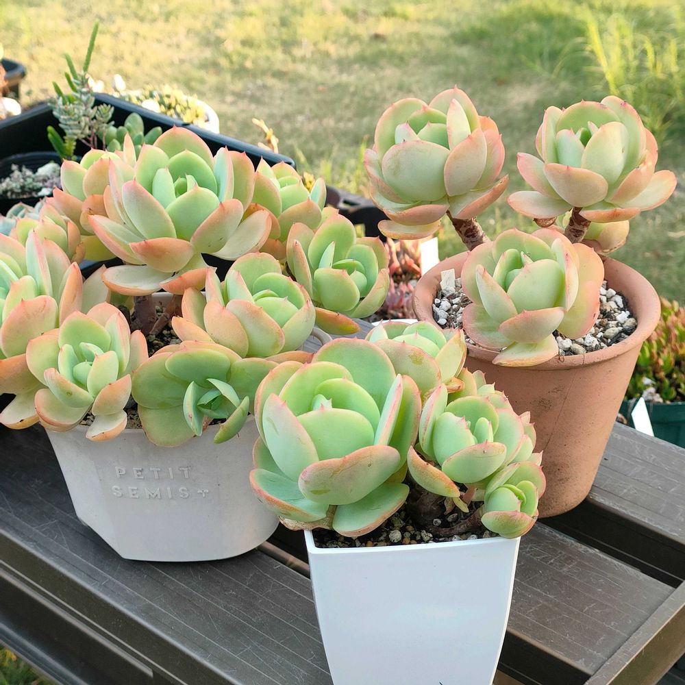 写真はしばらく植え替えもしてない日晒しの子達で、可愛いをキープしてますが、秋には植え替えしたいです🍑
